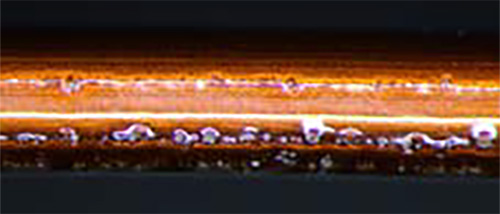 Ultra-fast non-contact surface particle defect detection for fine round wires. A single control box supports 16 detection heads.