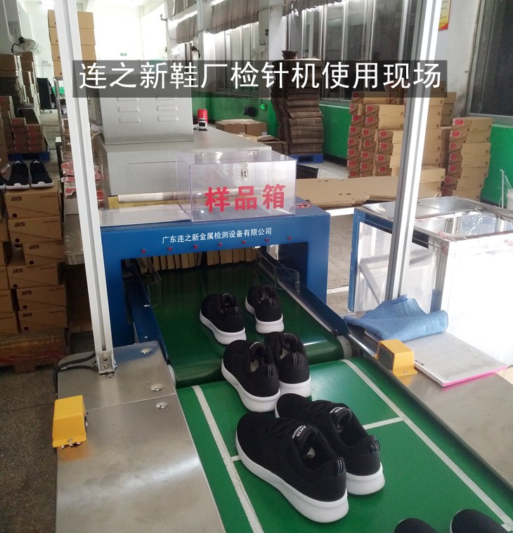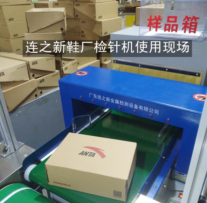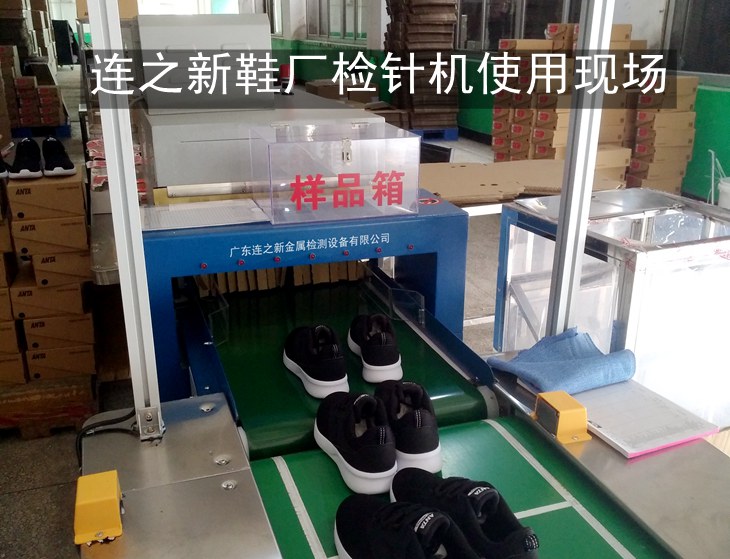 连之新为安踏鞋业加工商福建莆田力奴鞋业非标定制的多台平行对接流水线检针机使用案例现场。将检针机衔接到到鞋厂流水线后端使用,极大的提高了鞋厂流水线自动化生产水平。欢迎鞋业企业上门选购鞋厂检针机。